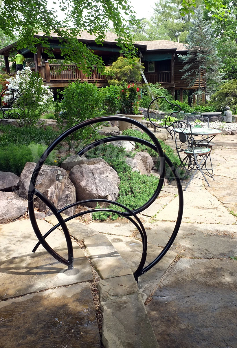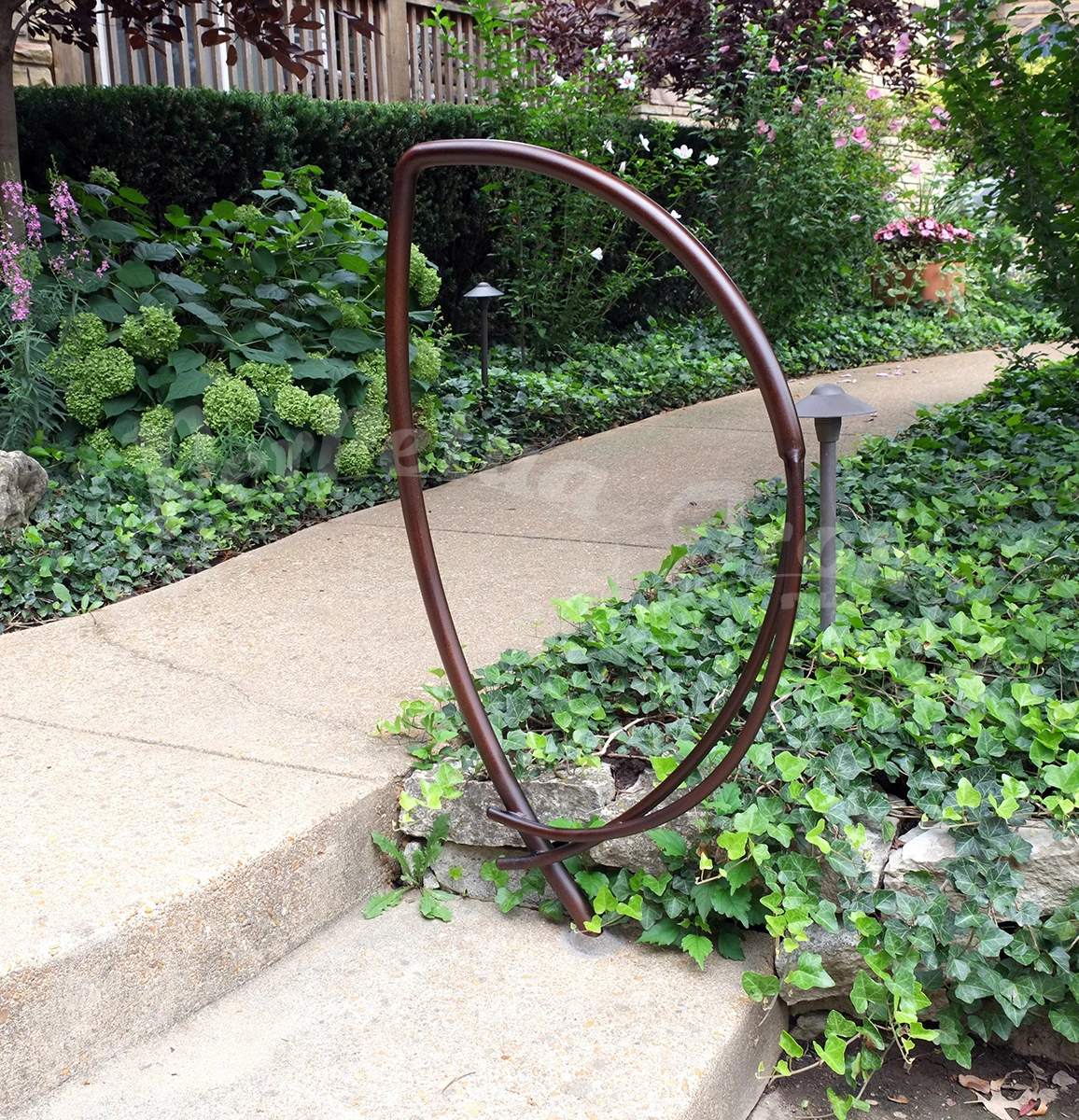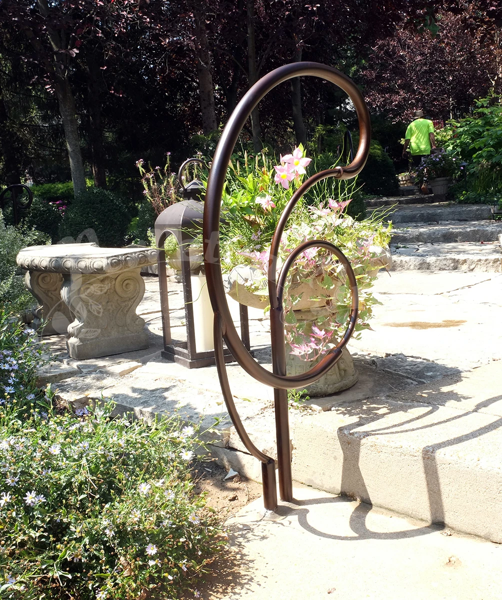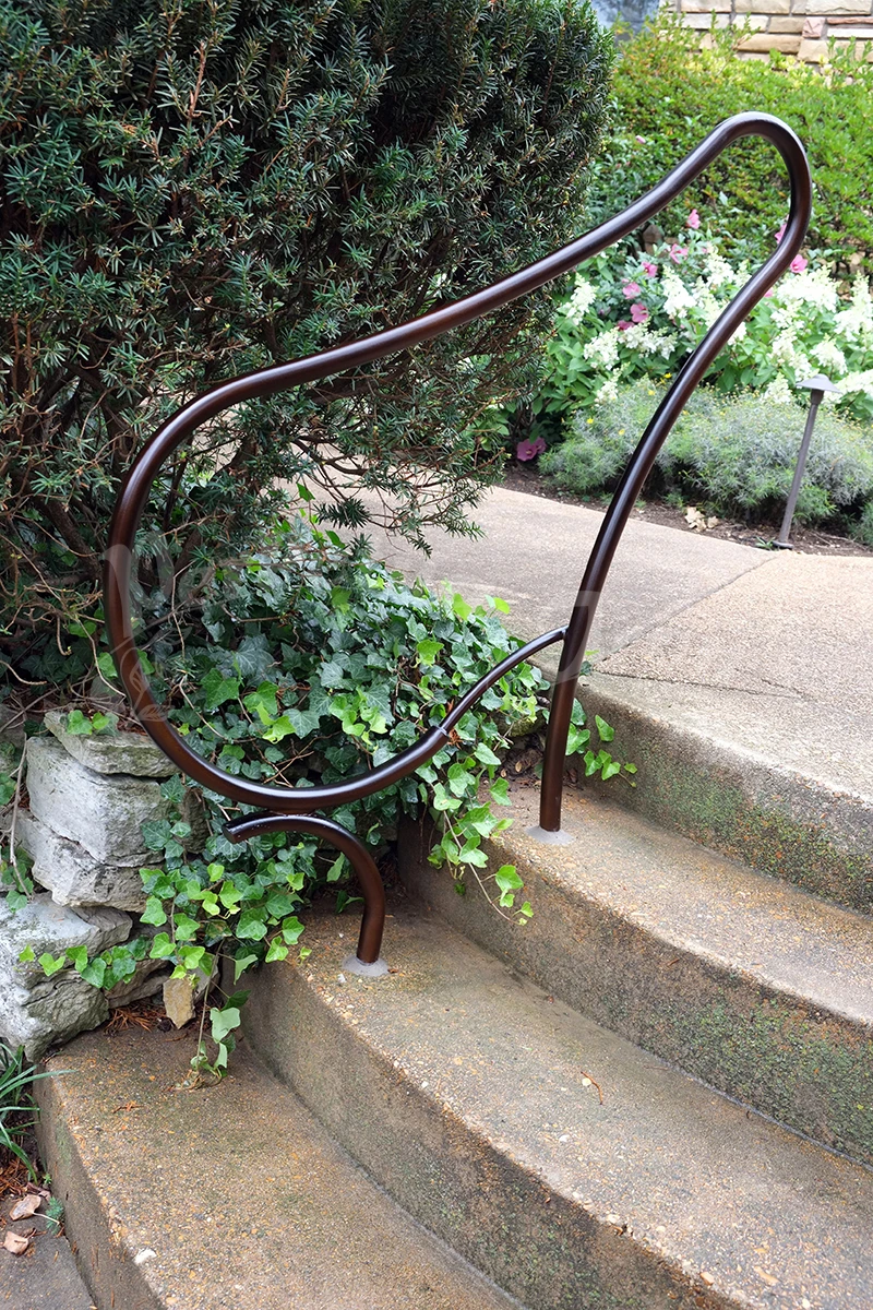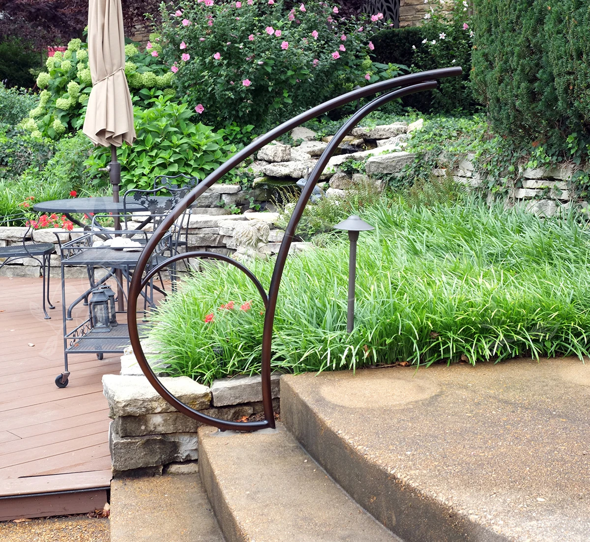 A series of railings were made for a customer’s garden: a magnificent site with years of design and plantings – a truly beautiful place and an honor to make work for! Our customer is open minded and adventurous and so we were able to imagine freely these railings for the pathways and steps in the garden.