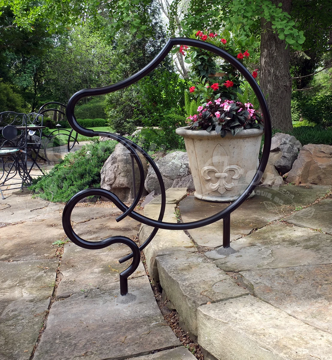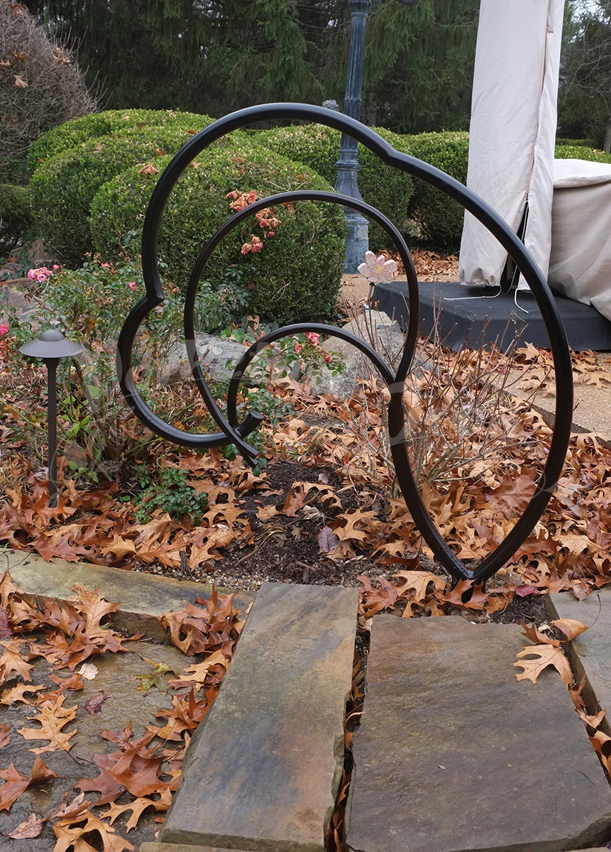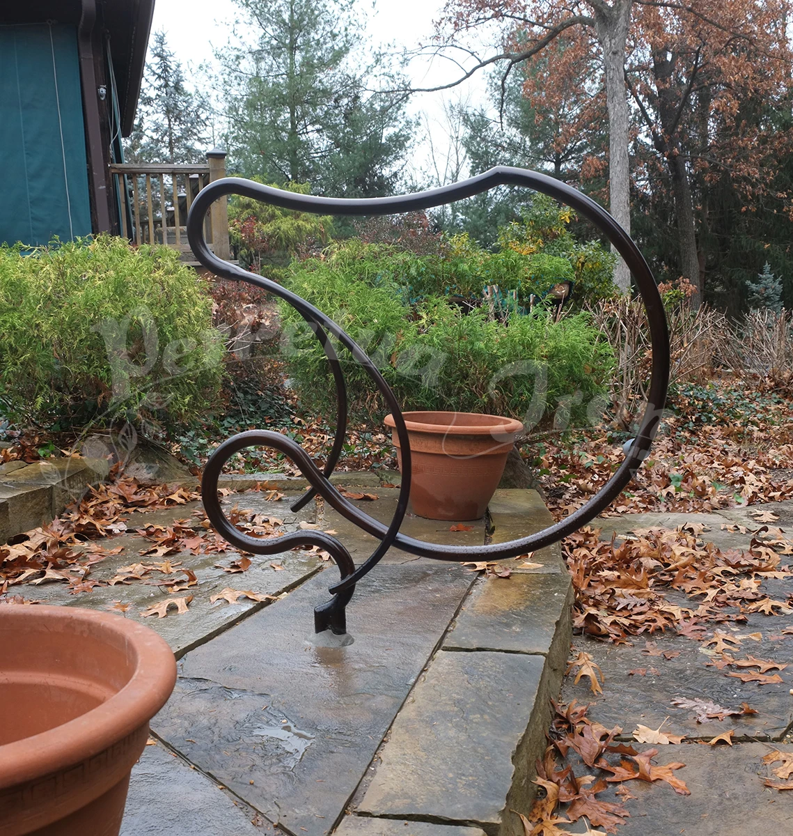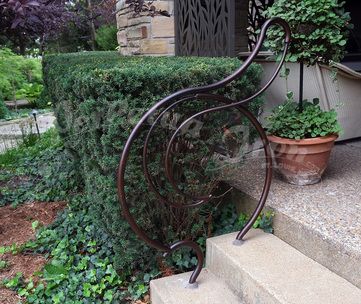 A series of railings were made for a customer’s garden: a magnificent site with years of design and plantings – a truly beautiful place and an honor to make work for! Our customer is open minded and adventurous and so we were able to imagine freely these railings for the pathways and steps in the garden.